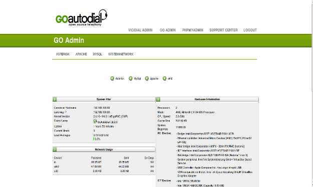 GOAutodial (http://www.goautodial.org/) is yet another attempt to put a “pretty face” on Vicidial. However, it actually includes a few additional utilities for server management that make it a more rounded platform (like database management tools, and other server management tools). Additionally, the “live wallboard” is much more polished than other flavors. It also offers wizard-based configuration for many of the more common tasks, like configuring campaigns, which makes administration easier for call center managers.