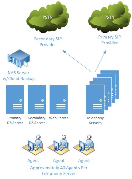 A PBX server is typically scaled according to the number of calls and phones attached to it, but its monolithic (meaning that its ONE server). You must choose a server that will meet a call center’s needs not only now, but in foreseeable future as well, since upgrading the server means replacing it completely, which is very expensive.